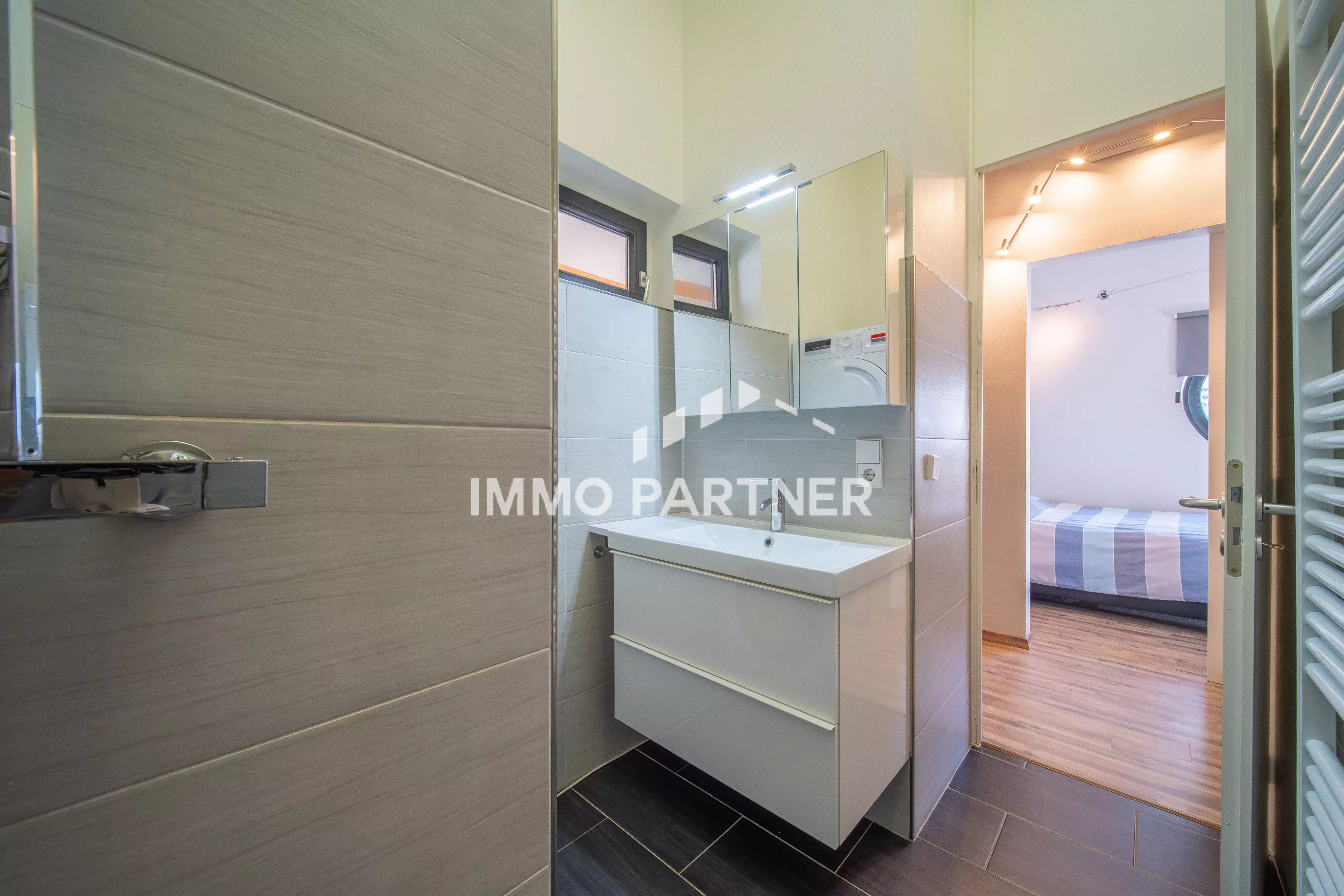 The apartment comprises an entrance hall with intercom, a spacious, bright living room with open kitchen, with direct access to a superb ± 25 m² terrace, perfect for enjoying the sunny days.